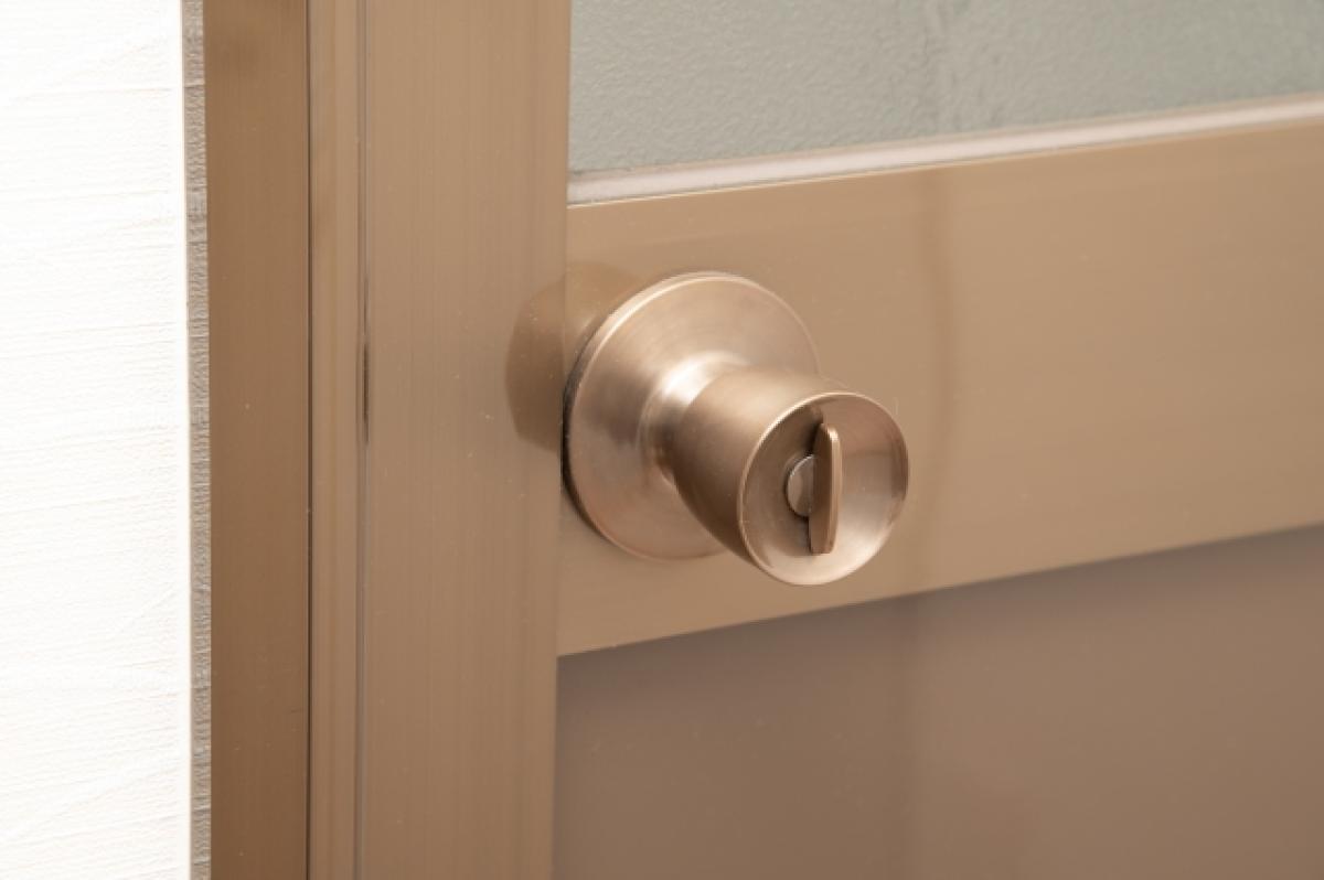 ドアに取り付けられた球状の取っ手を握り、回して開けるタイプのノブです。古くからあるスタンダードな形式で、コストが低く、壊れにくいのが利点です。